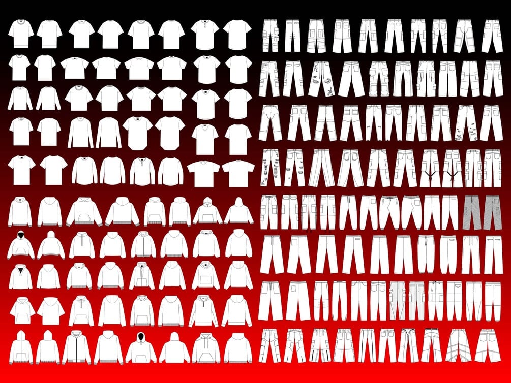 1000+ Streetwear Clothing Vector Mockups Mega Pack | Techpack Mockups | Clothing Brand Fashion Design Flat | Adobe Illustrator | Adobe Photoshop | Procreate